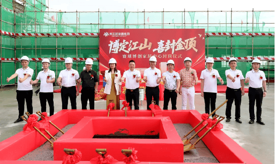 2025年9月26日上午,作为顺德龙江家居产业升级的核心载体 —— 博蕊斯家居集团博创中心项目,迎来主体结构封顶的历史性时刻。
