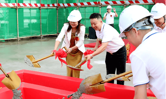 随后,占伟林董事长、严俊芳总经理、严成俊总经理共同上台切金猪,并将封顶的喜悦与顺利传递给每一位参与者。