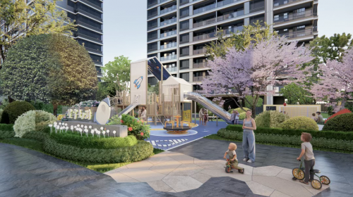 望樾九境雅奢园林:为了尊重在地文化与临平宋韵美学,望樾组团以《千里江山图》为灵感擘画雅奢园境,从禅意山水到阳光草坪,从水院会客厅到全龄儿童乐园,构建一幅流动的江山画卷,让传统意蕴与当代生活相融,并且部分实景现已兑现,品质清晰可见。