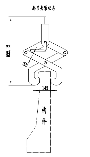 实际操作中,工人只需推动限位板释放挂钩,将吊具移至护栏正上方,待挂钩自然下落贴合构件边缘后,即可启动起重设备。随着吊钩上升,菱形框架受力变形,带动挂钩自动夹紧护栏,无需人工干预,实现“越吊越紧”的安全效果。