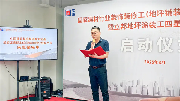 中国建筑装饰装修材料协会建筑涂料分会秘书长朱厚举先生充分肯定了立邦在地坪人才培养方面的创新实践:“职业技能培训是推动行业标准化、专业化、高质量发展的重要支撑。面对新质生产力发展要求,我们更应充分发挥企业、协会合力,加强职业能力建设,完善行业人才生态。立邦此次主办地坪铺装工技能认证培训,体现了优秀企业的行业责任感与战略远见。希望立邦继续发挥资源与平台优势,与协会一道,为行业注入更多活力。”