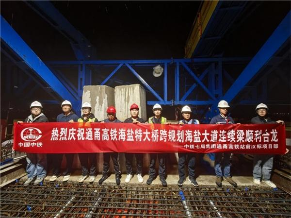 4月9日,随着最后一方混凝土精准浇筑完成,由中铁七局承建的新建南通至宁波高速铁路海盐特大桥跨规划海盐大道(37.95+64+37.95)m连续梁连续梁成功实现合龙。