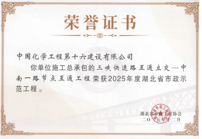 “三峡快速路-中南一路节点互通工程”获评2025年度湖北省市政示范工程