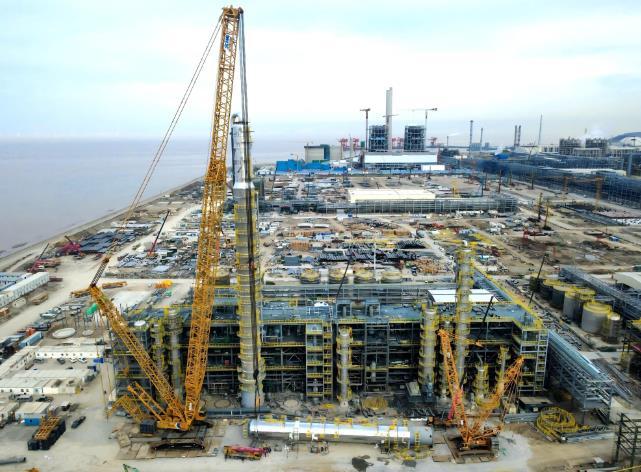 中国化学工程十六化建浙石化高端新材料己二酸项目第一高塔精准就位!中国化学工程十六化建浙石化高端新材料己二酸项目第一高塔精准就位!中国化学工程十六化建浙石化高端..