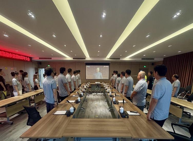 清晨,职工们早早来到会议室,怀着激动的心情等待着阅兵仪式的开始。会议室里人员满座,大家的目光紧紧盯着大屏幕,气氛庄重而热烈。当激昂的国歌响起,全体职工自发地站..