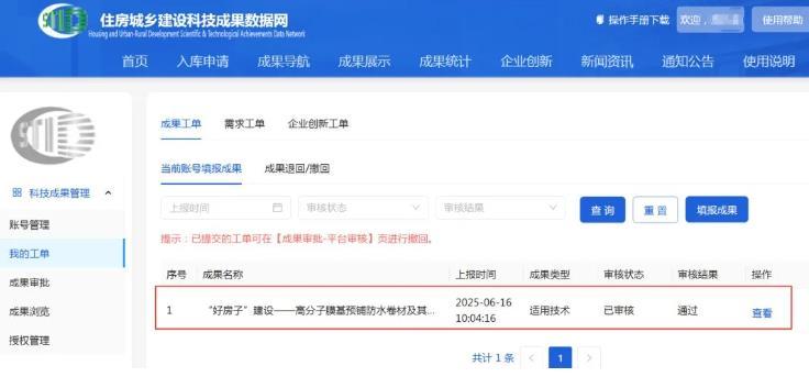 近日,据住房城乡建设科技成果数据网公示显示,由卓宝科技自主研发的“‘好房子’——(中国红)高分子膜基预铺防水卷材及其应用技术”已通过权威审核,正式纳入住建部科..